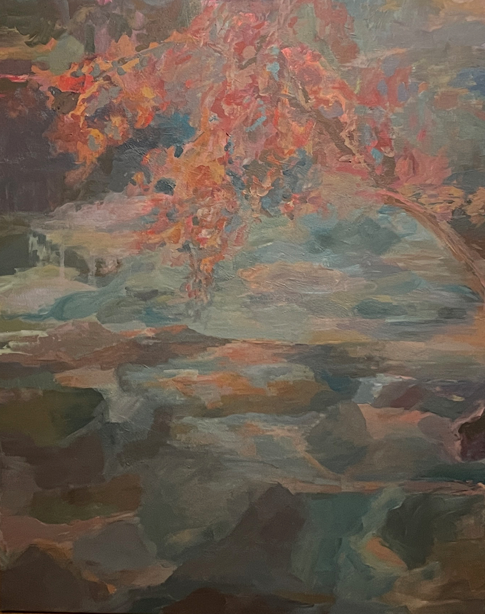 am Fluss, Öl auf Aludibond, 70 x 100